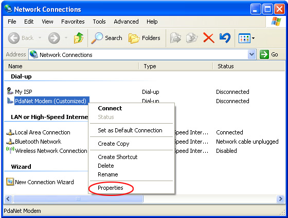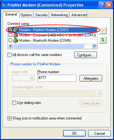 3. Make sure PdaNet connection is bound to the correct "PdaNet Modem"