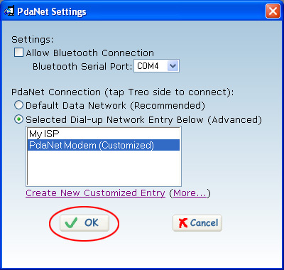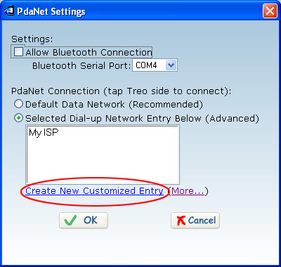 Step 3: Duplicate the existing settings that PdaNet uses by clicking on the link that says "Create Customized Entry" and select the entry created. Make sure you click "OK" to save the changes.